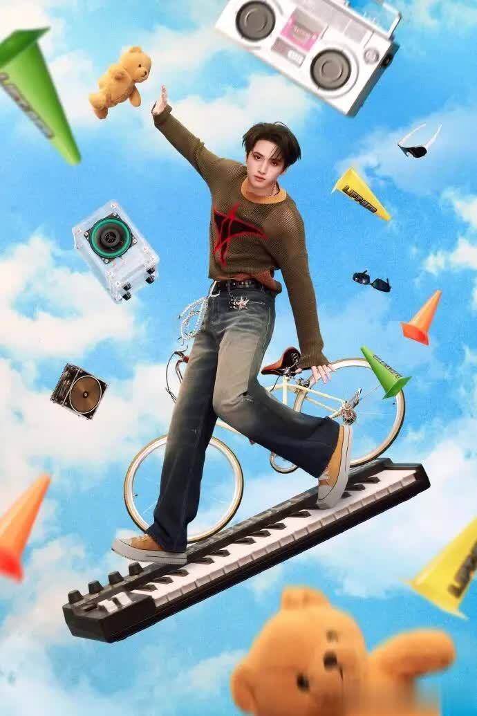 画面的创意设计,更是将 “摆脱地心引力” 的主题诠释到了极致。澄澈透亮的蓝天白云为底,少年们仿佛挣脱了重力的桎梏,在云海之上肆意舒展身姿,每一个动作都带着不被规则束缚的自由与洒脱。吉他、篮球、羽毛球拍、复古收音机、书本唱片、相机画板…… 这些充满生活气息与少年热爱的物件,随着他们的动作在空中肆意飞舞,每一个元素都藏着少年们的日常与梦想,也共同构建出一个不被世俗定义、只属于青春的自由乌托邦。